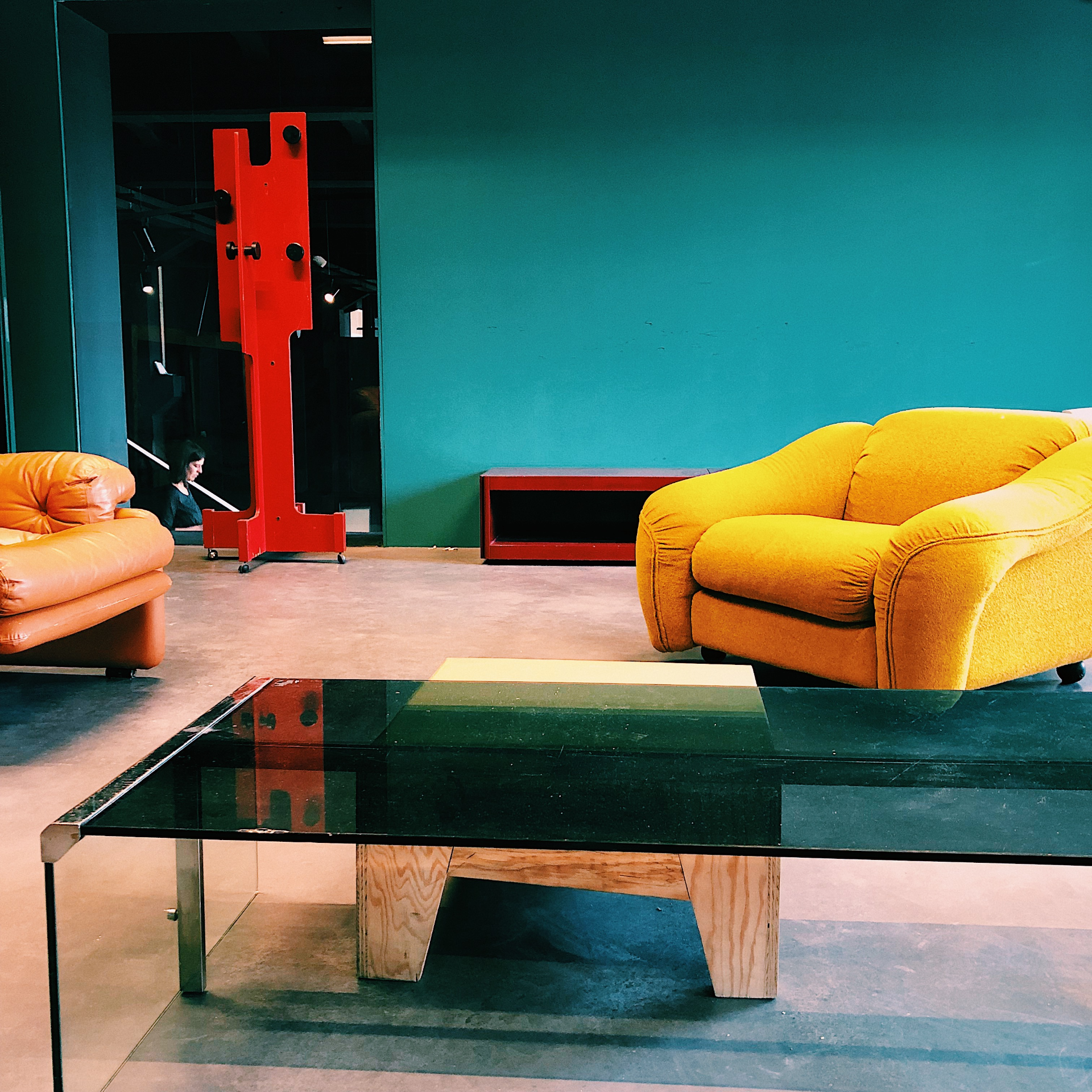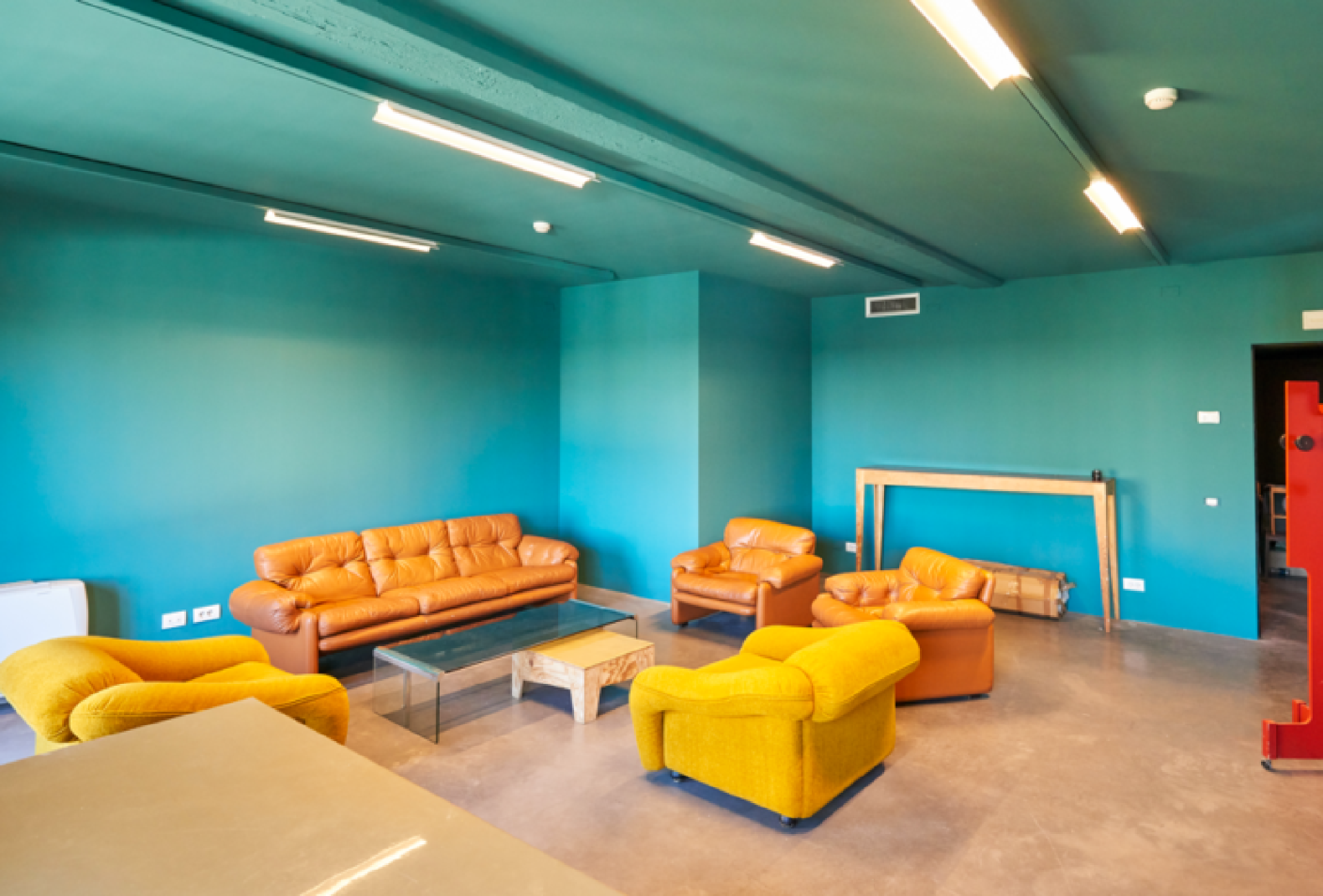 La selezione degli arredi della zona lounge e green room sono stati pensati per evocare un mood anni 70-90. Una serie di poltrone, tavolini e lampadari vintage caratterizzano lo spazio in maniera iconica e curata al dettaglio.