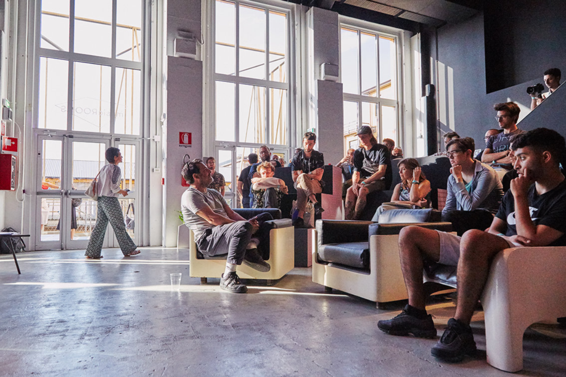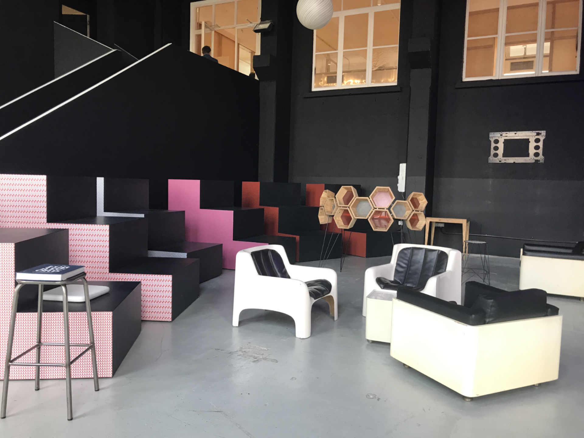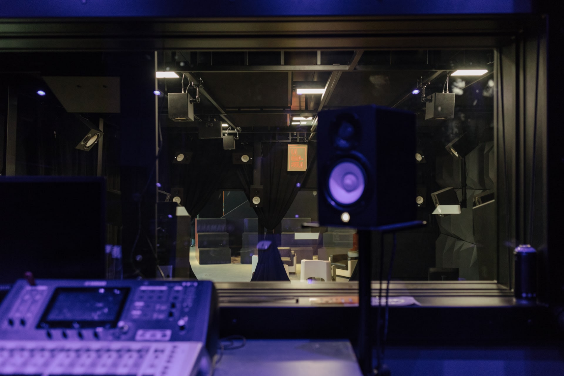MIH offre diversi spazi, come La Capsula, arredata con le più recenti attrezzature per la musica tecnologica. L’anfiteatro, uno spazio aperto con gradinate modulari riposizionabili per ospitare talk, incontri informali e presentazioni, ma anche concerti e momenti di networking. Realizzazione decorazioni grafiche per gradoni, composti da pattern con le lettere e colori del logo M-I-H che donano personalità e colore allo spazio.